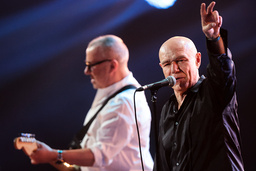 2021-04-16 KRASNOGORSK, MOSCOW REGION, RUSSIA - APRIL 16, 2021: Guitarist Nikolai Devlet-Kildeyev (L) and lead singer Sergei Mazayev of the Russian rock band Moral Codex perform during a concert marking the band's 30th birthday at Crocus City Hall. Sergei Bobylev/TASS Foto Sergei Bobylev / ITAR-TASS / TT / kod 225 ref: ***BETALBILD*** OBS Bilden kommer från den statliga ryska nyhetsbyrån Itar-Tass