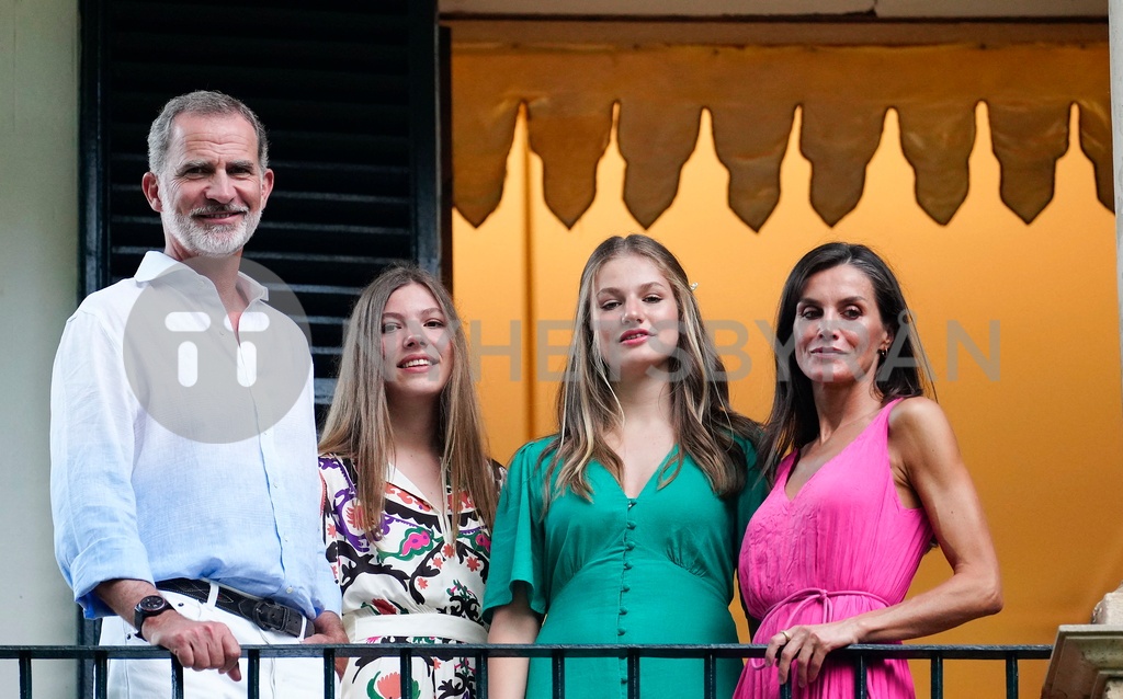 King Felipe VI , Queen Letizia , Crown Princess Leonor and Princess Sofia visit Alfabia Gardens during their summer holidays in Mallorca. Bunyola, Mallorca - July 31, 2023