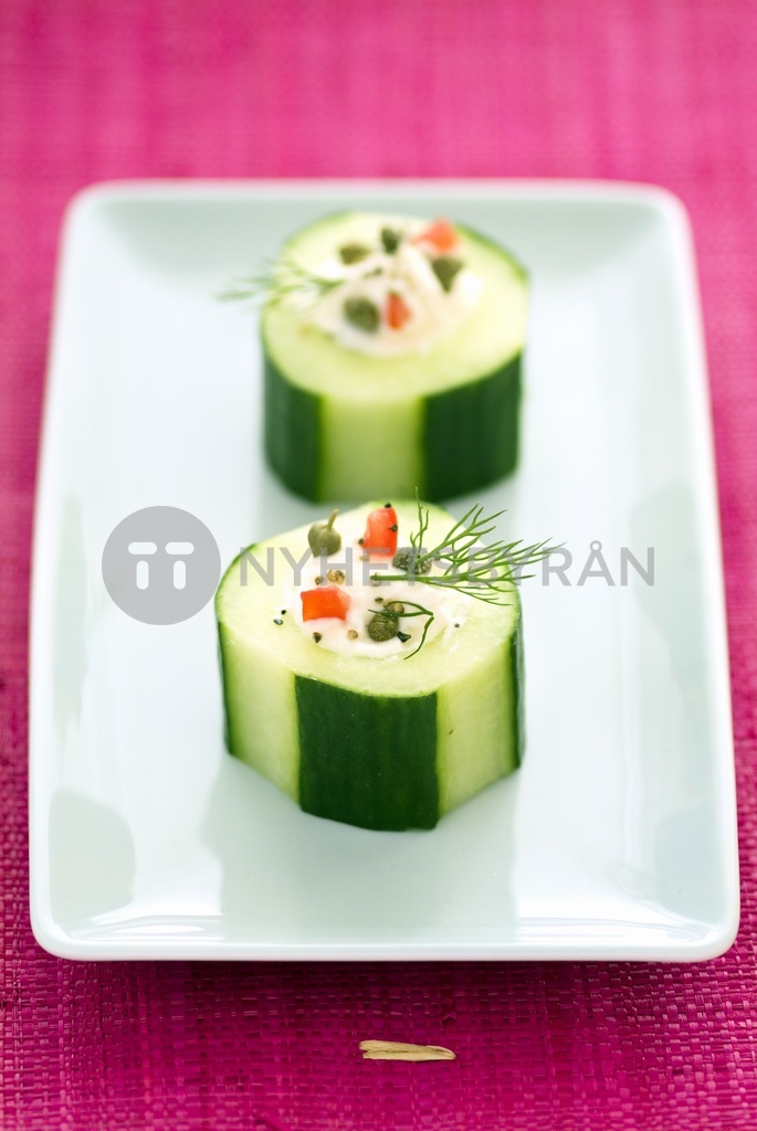 pieces of cucumber stuffed with fromage frais