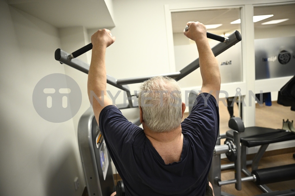 STOCKHOLM, SVERIGE 20251210 En äldre person som styrketränar på ett trygghetsboende på Lidingö i Stockholm. Foto: Fredrik Sandberg / TT / Kod 10080