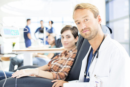 Portrait of doctor and patient undergoing medical treatment in outpatient clinic