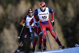 epa04535934 Anders Gloersen of Norway iin action on his way to the 1st place during the men's 15 km skating competition at the Davos Nordic FIS Cross Country World Cup in Davos, Switzerland, 20 December 2014. EPA/GIAN EHRENZELLER
