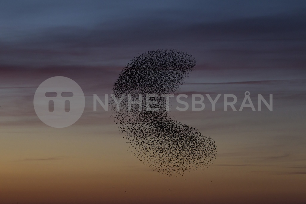 Starlings flocks Common Starlings flock / murmuration i...