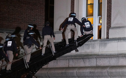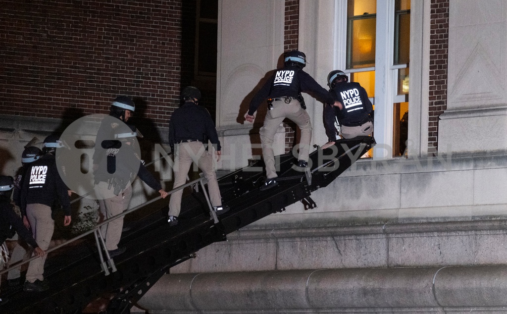 Using a tactical vehicle, New York City police enter an upper floor of Hamilton Hall on the Columbia University campus in New York Tuesday, April 30, 2024, after a building was taken over by protesters earlier Tuesday. Hundreds of police officers swept into Columbia University on Tuesday night to end a pro-Palestinian occupation of an administration building and sweep away a protest encampment, acting after the school’s president said there was no other way to ensure safety and restore order on campus. (AP Photo/Craig Ruttle) NYCR106
