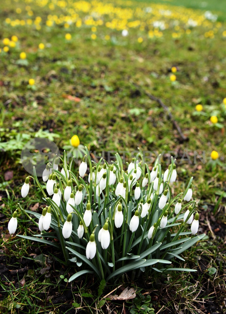 MALMÖ 2014-02-22 Vintergäck och snödroppar på kyrkogården vid Gustav Adolfs torg i Malmö. Nu är det officiellt vår i Götaland. Sedan den 15 februari har dygnsmedeltemperaturen legat över nollan i sju dagar i rad - och då är det vår enligt SMHI. Redan kan tidiga flyttfåglar beskådas, som ringduvor på gatlyktorna i Stockholm och en gul matta av vintergäck på en kyrkogård i centrala Malmö. Och de närmaste dagarna väntar enligt SMHI milt väder i nästan hela landet. Foto: Erika Oldberg / TT / Kod 10510