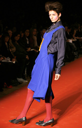 A model wears a creation by fashion designer Vivienne Westwood for her Fall-Winter 2008-2009 ready-to-wear collection presented in Paris, Monday, Feb. 25, 2008. (AP Photo/Jacques Brinon)