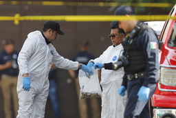epaselect epa12617465 Members of the Jalisco State Prosecutor's Office are working at the scene of a shootout that left three people dead and four wounded in Zapopan, Jalisco, Mexico, 29 December 2025. EPA/Francisco Guasco