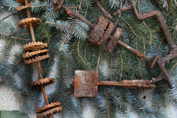 The exhibition Nazi Camps through the lens of archaeology at the castle in Usti nad Labem - Krasne Brezno, Czech Republic, June 29, 2023. Prisoners' personal items, handicrafts and seemingly banal objects such as food packaging offer a new perspective on this part of the dark heritage of the 20th century. Eleven panels present four of the Nazi camps that were located in the Czech Republic. Pictured metal components from Sauersack Rolava mine. (CTK Photo/Libor Zavoral)