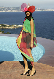 A model wears a creation by French fashion designer Pierre Cardin during the presentation of his entire Spring-Summer 2009 and Autumn-Winter 2009 collections at his villa in Theoule sur Mer, southern France, Monday, Oct. 6, 2008. (AP Photo/Lionel Cironneau)