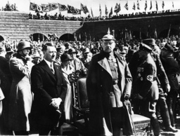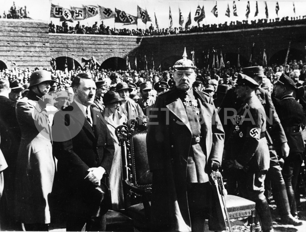 Officers of the Eastern Force of WW I and citizens mass the war memorial in Tannenberg, East Prussia, Germany, (today Olsztynek, Poland) August 27, 1933 to meet Reichschancellor Adolf Hitler, left, next to Reichspresident Paul von Hindenburg and to commemorate the Prussian people. At right next to Hindenburg is State Governor of Prussia, Hermann Goering. It was in Tannenberg where von Hindenburg celebrated his biggest military success over the Russian army. (AP Photo/Str) Reichskanzler Adolf Hitler, links, und Reichspraesident Paul von Hindenburg waerend der Treuekundgebung in Tannenberg, Ostpreussen, (heute Olsztynek, Polen) am 27. August, 1933. Rechts neben Hindenburg der preussische Ministerpraesident Hermann Goering. Zu der gewaltigen Huldigung der ostpreussischen Bevoelkerung vesammelten sich die Ostland Treufuehrer fuer den Reichspraesidenten und den Reichskanzler vor dem Kriegerdenkmal in Tannenberg, wo Hindenburg seinen groessten Sieg ueber die Russen erfocht. (AP Photo)
