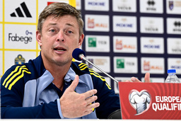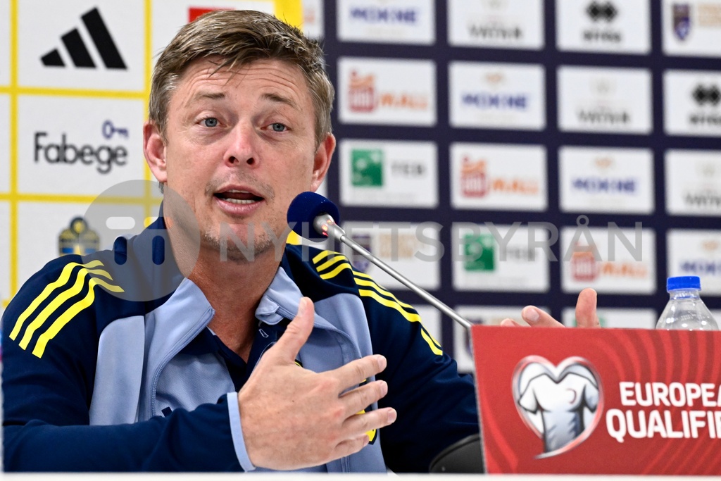 PRISTINA, KOSOVO 20250907 Förbundskaptenen Jon Dahl Tomasson under pressträffen på Fadil Vokrri stadion i Pristina inför måndagens VM-kvalmatchen i grupp B mellan Kosovo och Sverige. *** Bilden ingår i SPORTPAKET. För övriga BETALBILD *** Foto: Jonas Ekströmer / TT / Kod 10030