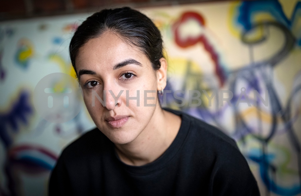 Regissören Sara Khaledi vid tisdagens presskonferens inför föreställningen Med livet som insats på Inkost i Malmö. Föreställningen är ett samarbete mellan Inkonst, Malmö Stadsteater och Fryshuset.