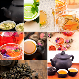 collection of different herbal tea infusion collage