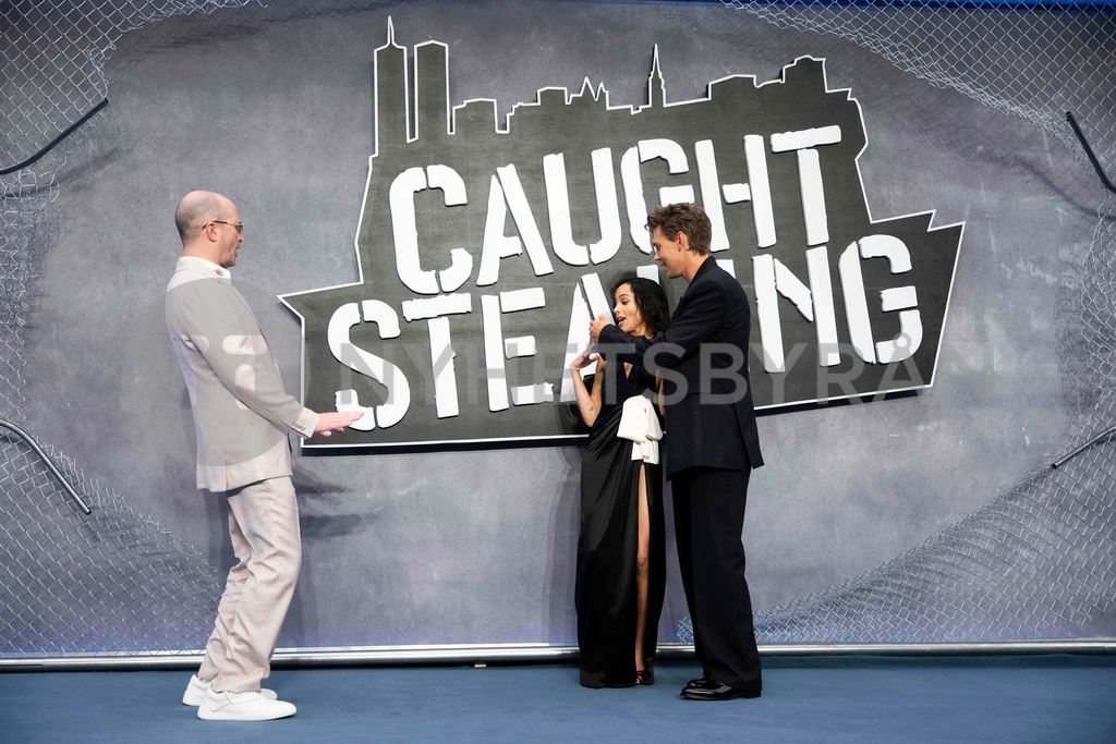 Director Darren Aronofsky, from left, Zoe Kravitz and Austin Butler pose for photographers upon arrival at the screening of the film 'Caught Stealing' on Tuesday, Aug. 19, 2025, in London. (Photo by Scott A Garfitt/Invision/AP) INVW