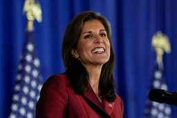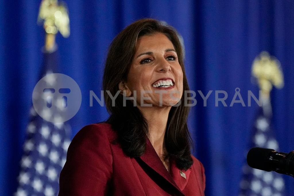 Republican presidential candidate former UN Ambassador Nikki Haley speaking at an election night event, Saturday, Feb. 24, 2024, in Charleston, S.C. (AP Photo/Chris Carlson) SCCC215