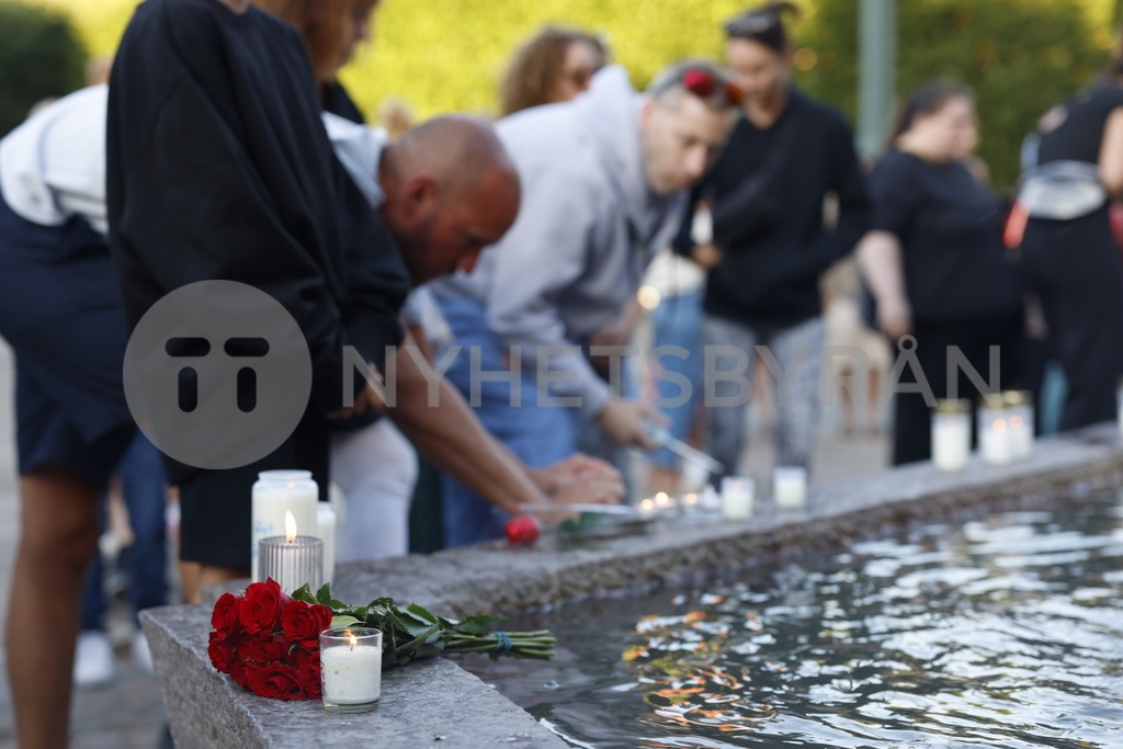 LANDSKRONA, SVERIGE 20240729 Ljusmanifestation på Rådhustorget för flickan i högstadieåldern som mördades i Landskrona. Foto: Andreas Hillergren / TT / Kod 10600