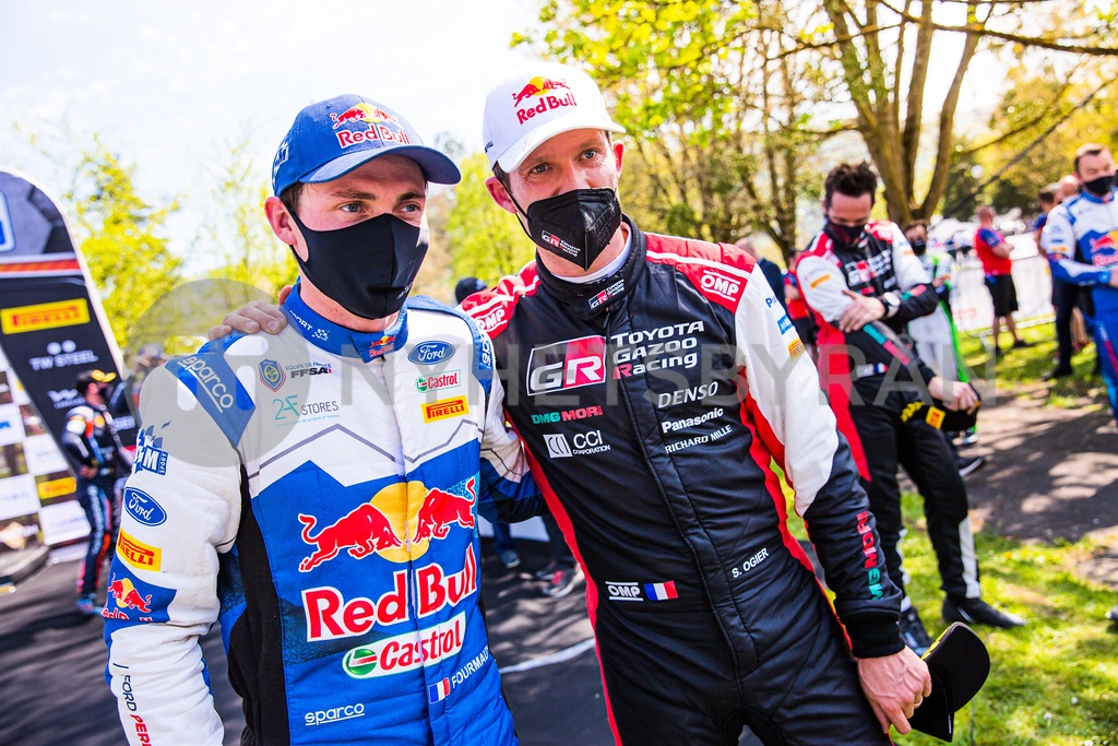 Fourmaux Adrien (fra), M-Sport Ford World Rally Team, Ford Fiesta WRC, Ogier Sebastien (fra), Toyota Gazoo Racing WRT, Toyota Yaris WRC, portrait ambiance arrivee, finish line during the 2021 Croatia Rally, 3rd round of the 2021 FIA WRC, FIA World Rally Car Championship, from April 22 to 25, 2021 in Zagreb, Croatia - Photo Bastien Roux / DPPI / LiveMedia/Sipa USA