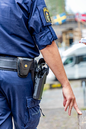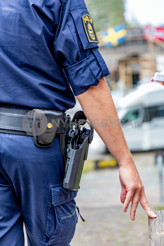 GÖTEBORG 202408 Svensk polis utan vapen i hölstret vid gränsen mot Norge i Charlottenberg. Foto: Adam Ihse / TT / Kod 9200