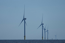 Wind turbines of South Fork Wind are seen off the coast of Block Island, R.I., Wednesday, Oct. 9, 2024. (AP Photo/Seth Wenig) NYSW105