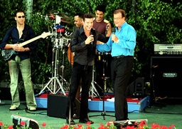 ©SCANPIX SWEDEN, 2001-07-10. Ricky Martin uppträder på Skansen i Stockholm. Ricky Martin under Allsång på Skansen. Han sjunger tillsammans med Lasse Berghagen. Orkester i bakgrunden. Foto: Peter Lydén/SCANPIX Code: 61340 *** ENGCAP: Ricky Martin live at Skansen during the programme -Allsång på Skansen-, broadcasted live on Tuesday evening.