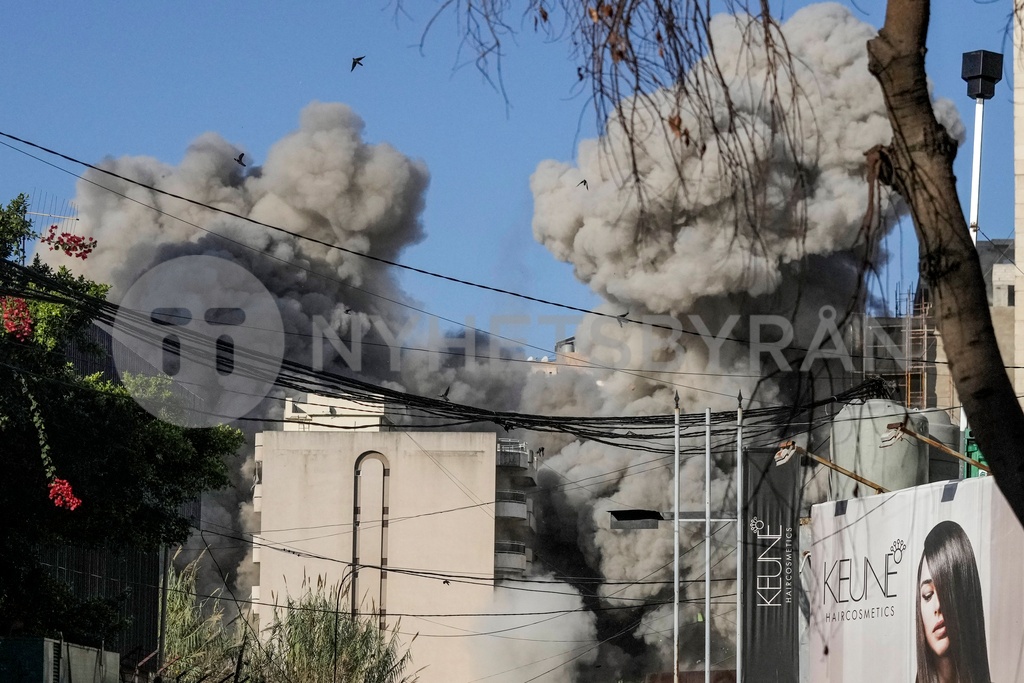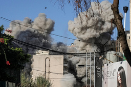 Smoke rises from a building collapsing after it was hit by an Israeli airstrike in Chiyah, south of Beirut, Lebanon, Sunday, Nov. 17, 2024. (AP Photo/Bilal Hussein) HAS102