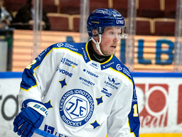 LEKSAND, SVERIGE 20240926 Kalle Östman nr 12 i Leksand under torsdagens ishockeymatch i SHL mellan Leksands IF och Rögle BK i Tegera Arena. Foto: Ulf Palm / TT / Kod 9110