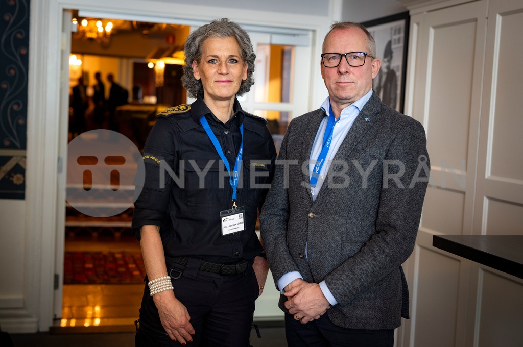 Lena Lindgren Schelin, generaldirektör för Kustbevakningen, och Johan Norden, marinchef vid försvarsmakten, i samband med Folk och försvars Rikskonferens på Högfjällshotellet i Sälen.