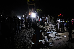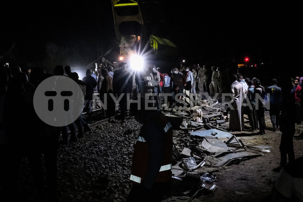 26 March 2021, Egypt, Tahta: People inspect damaged train cars after two passenger trains collided near Tahta in Sohag Governorate. Egyptian media said the collision caused some carriages to derail, killing at least 32 people and injuring dozens of others. Photo: Doaa Nasr/dpa