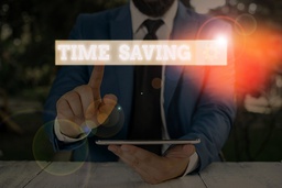 Text sign showing Time Saving. Business photo text the act of reducing the amount of time needed to do something