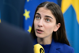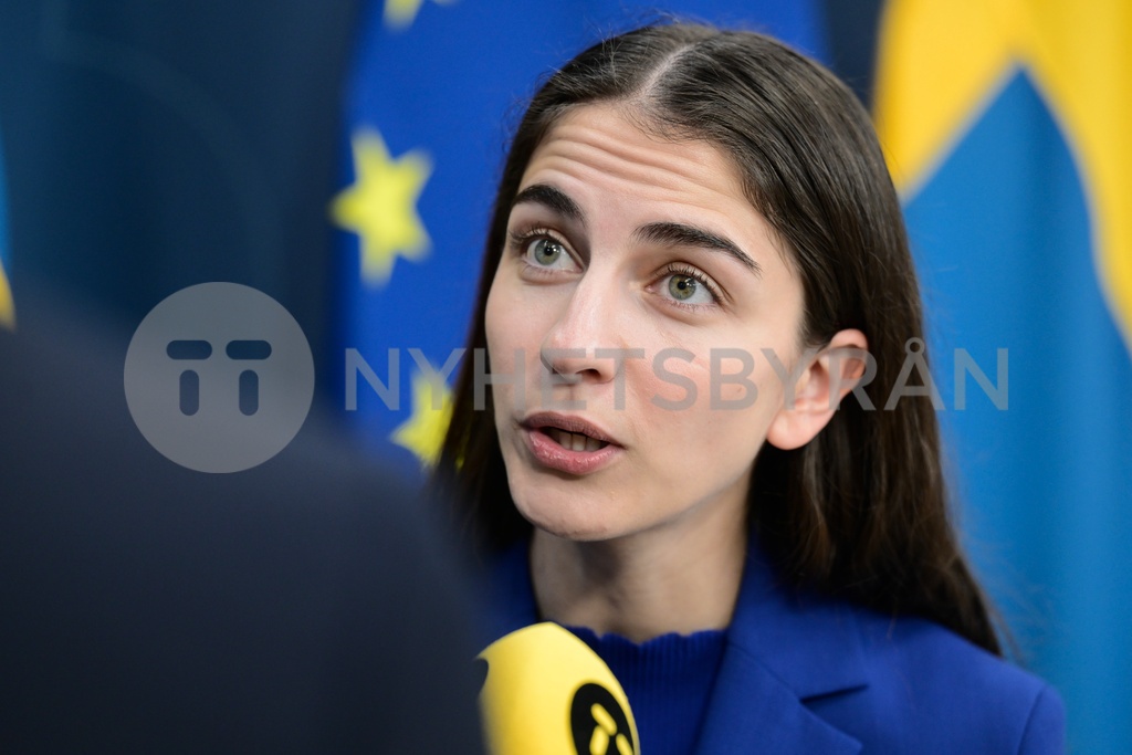 STOCKHOLM, SVERIGE 20231114 Klimat- och miljöminister Romina Pourmokhtari (L) under en pressträff med tidöpartierna om klimatpolitik på Rosenbad. Foto: Fredrik Sandberg / TT / Kod 10080