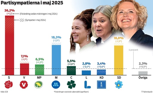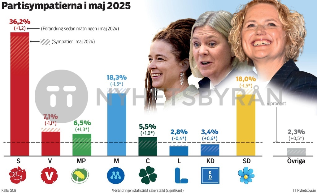 Partisympatiundersökning från SCB där väljare fått svara på vilket parti de skulle rösta på om det vore riksdagsval någon av de närmaste dagarna?