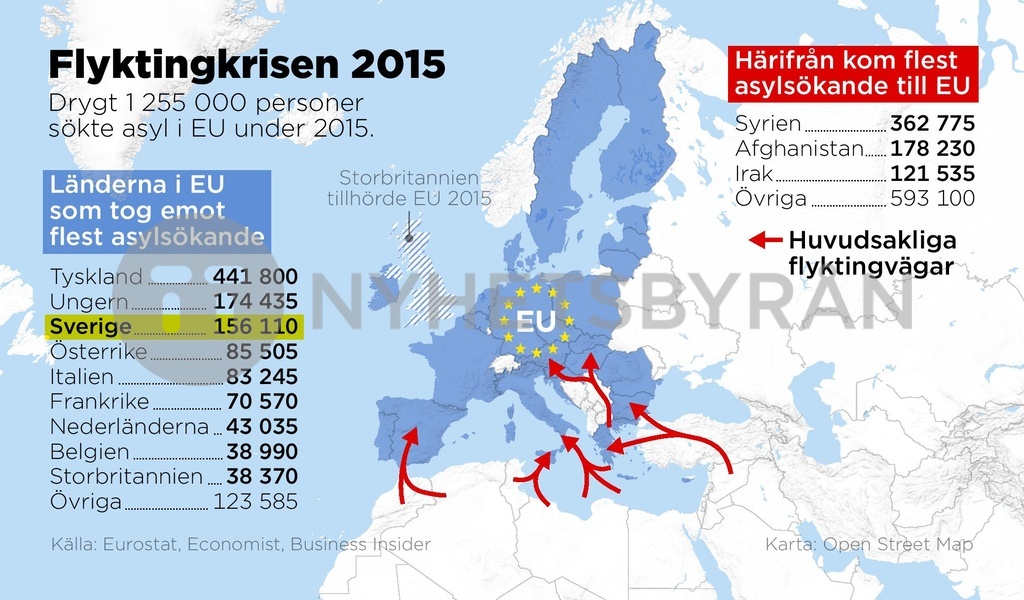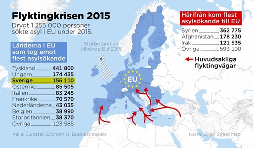 Tyskland var det land som tog emot flest asylsökande i EU under flyktingkrisen 2015. Men sett till antal asylsökande per invånare har Ungern och Sverige tagit emot flest asylsökande.